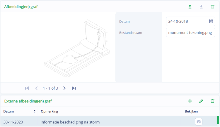 Situatieschets: u hebt een beschadigd graf gefotografeerd, en u wilt de afbeelding koppelen aan de administratieve gegevens van het graf.