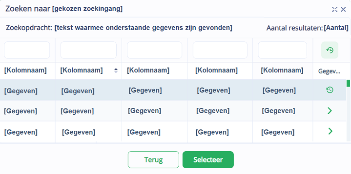 Als u in een procedure zit, dan neemt u de geselecteerde gegevens mee naar de processtap van die procedure.